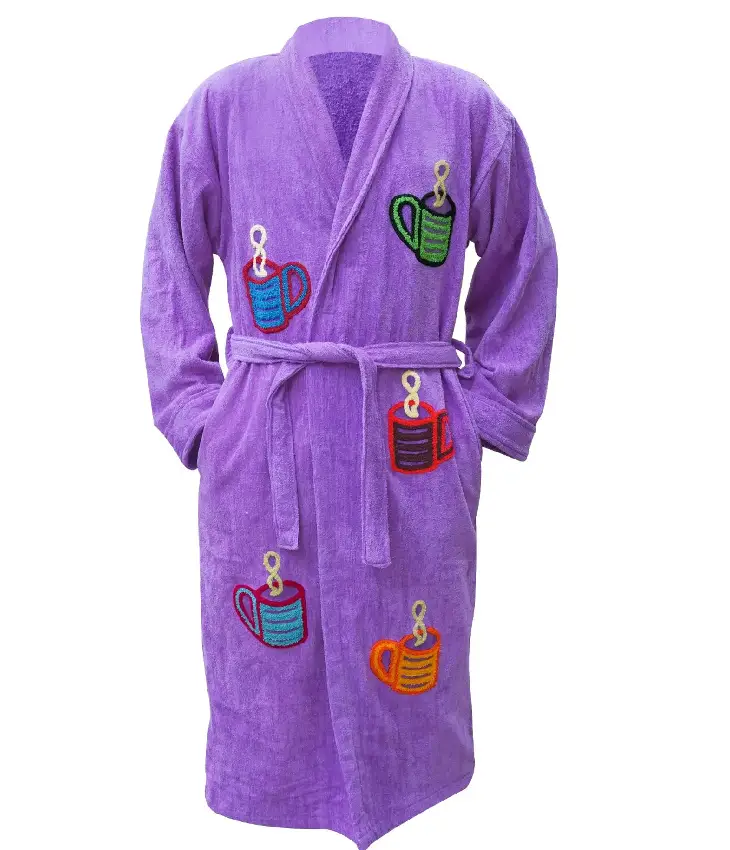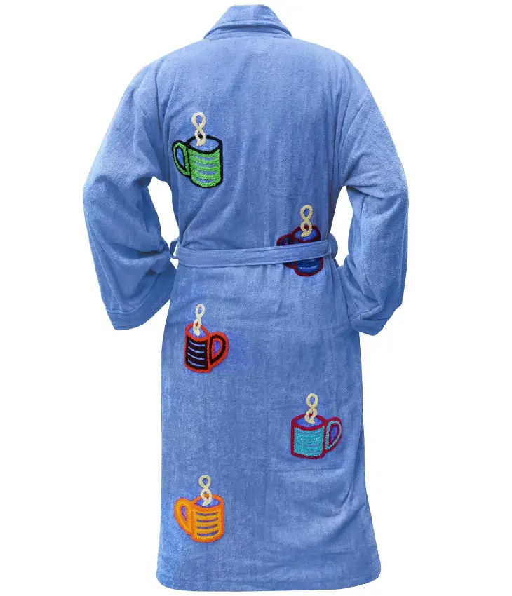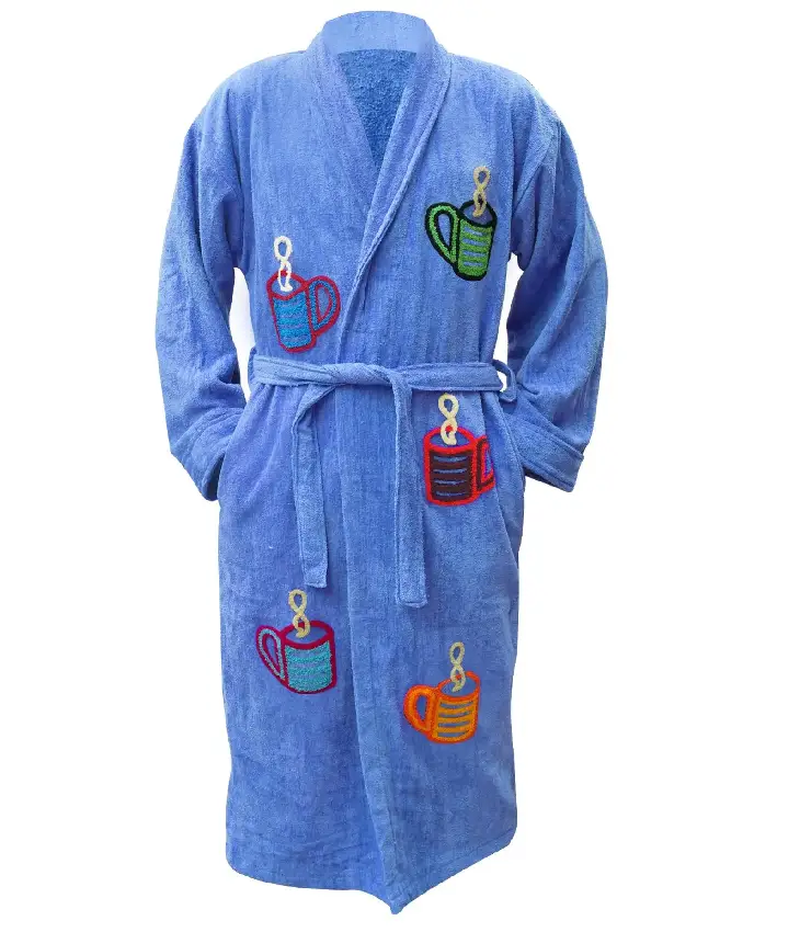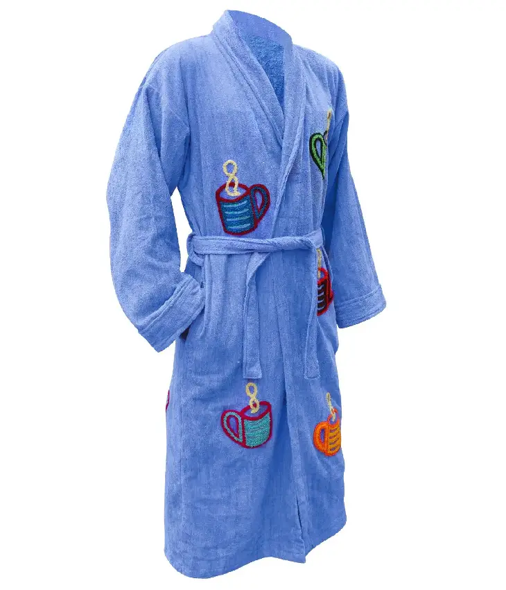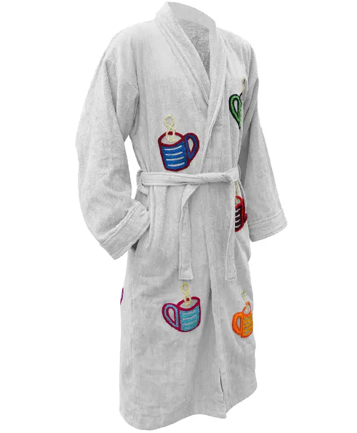 Coffee Mug Embroidery Soft Terry Bathrobe On Sale For Men and Women