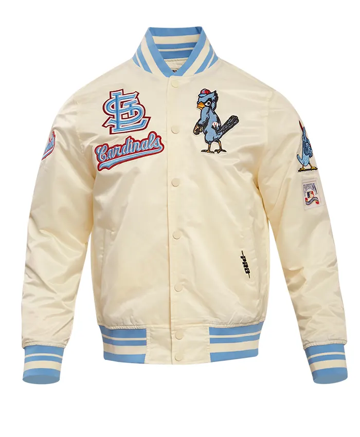 St Louis Cardinals Beige Bomber Full Snap Jacket On Sale For Mens and Womens