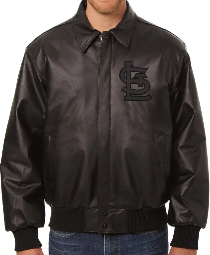 St Louis Cardinals Black Leather Bomber Jacket On Sale For Mens and Womens