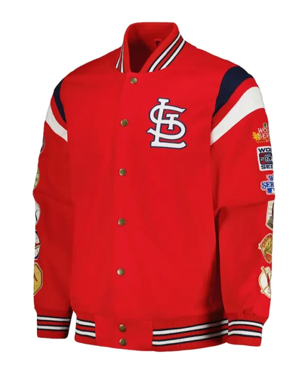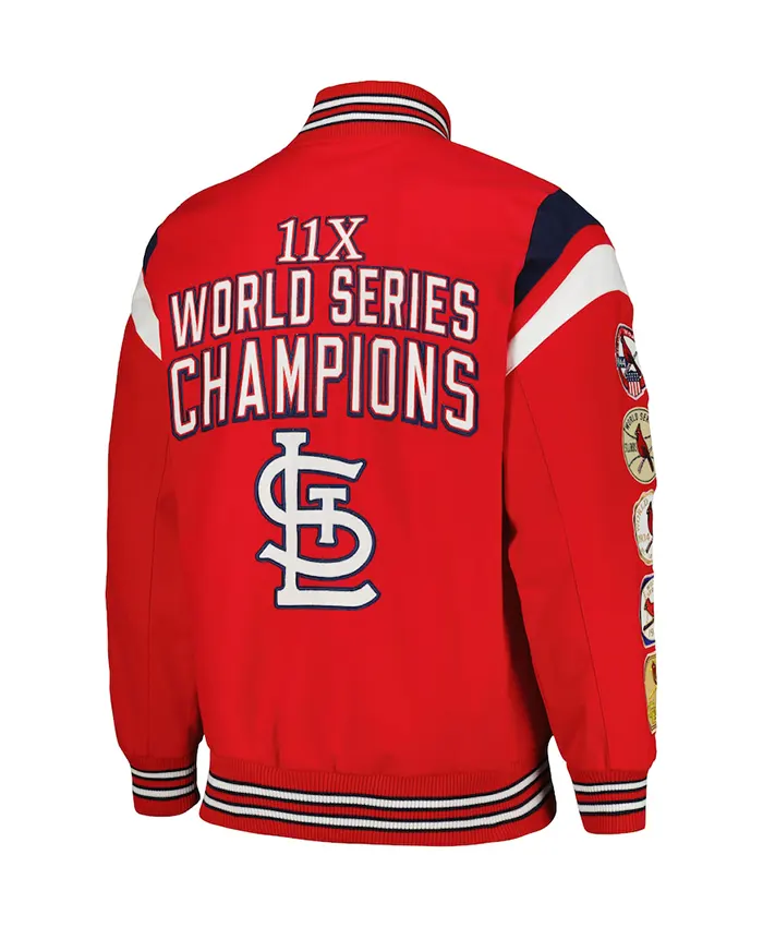 St Louis Cardinals Red Championship Bomber Full Snap Jacket For Mens and Womens on Sale