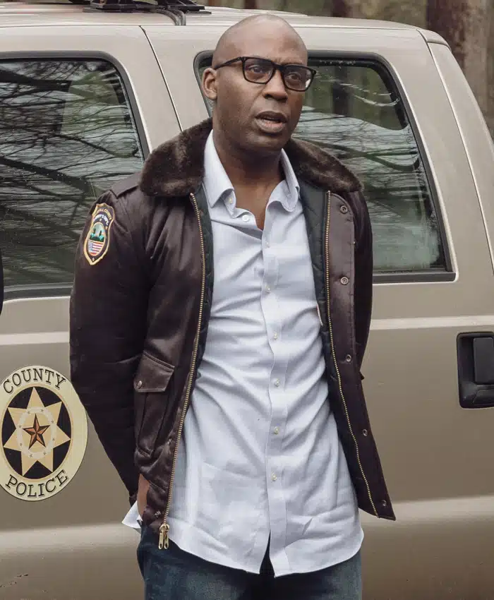 Patrick Regis Movie Stand Your Ground 2025 Sheriff Dwayne Miller Brown Shearling Jacket