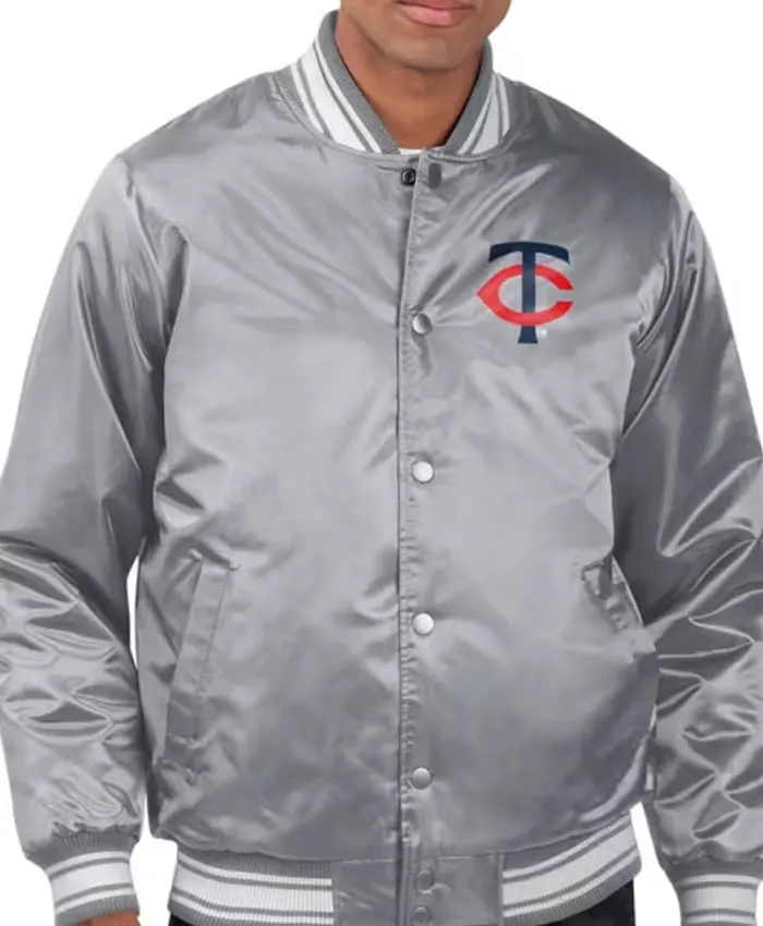 Starter Minnesota Twins Mens Grey Stacked Logo Jacket For Men and Women