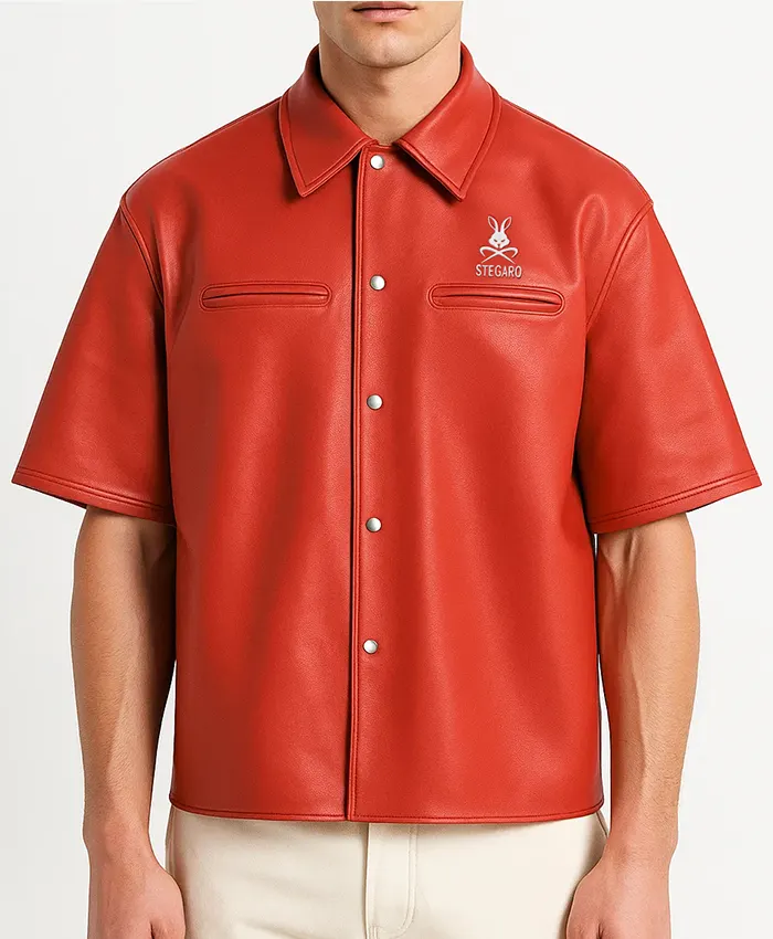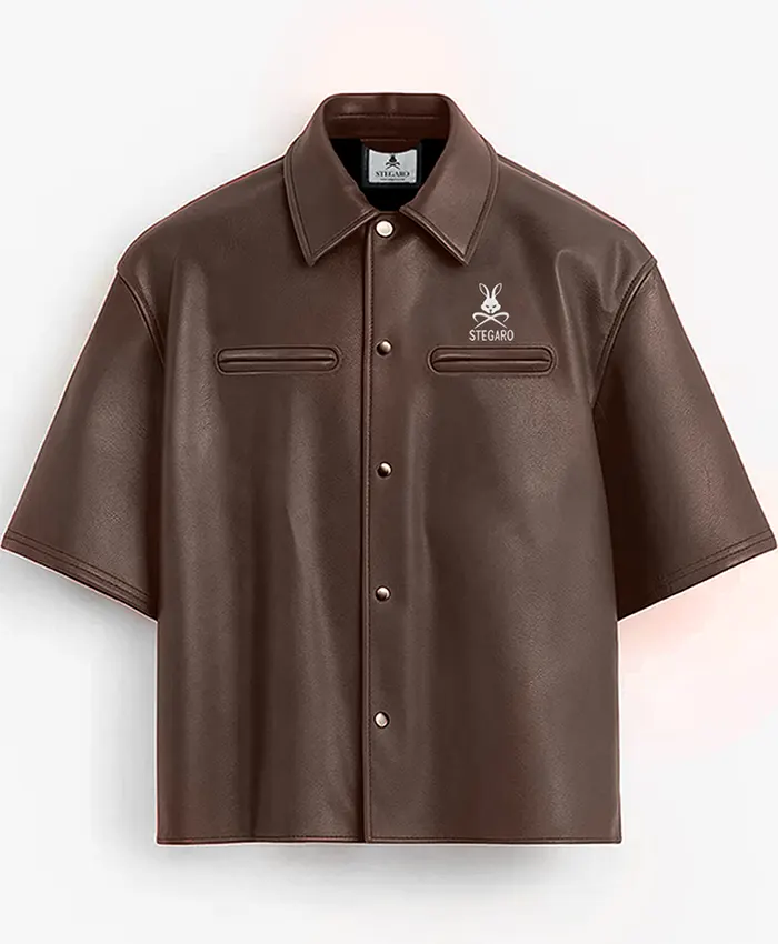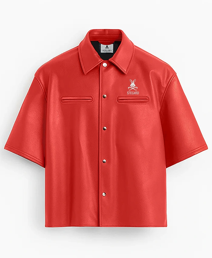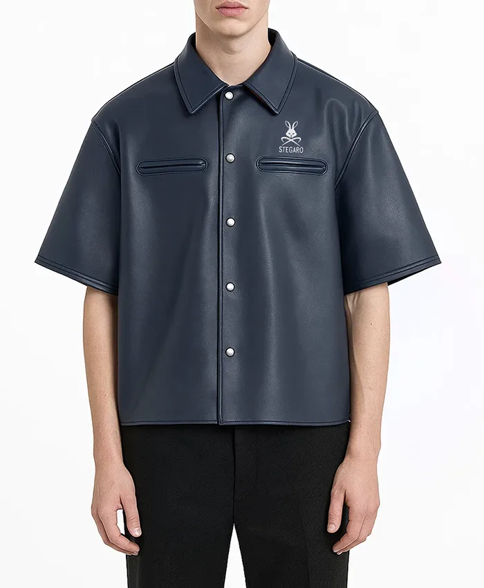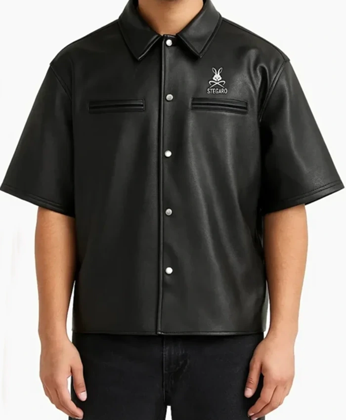 Shop Stegaro Believer Oversized Leather Snap Shirt For Men and Women