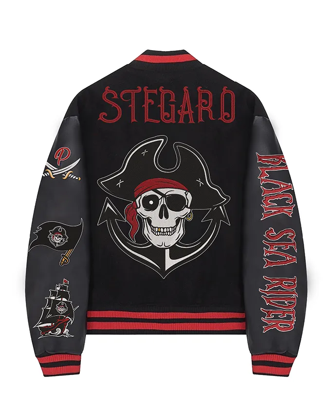 Buy Now Stegaro Pirate Sea Rider Black Varsity Jacket For Men