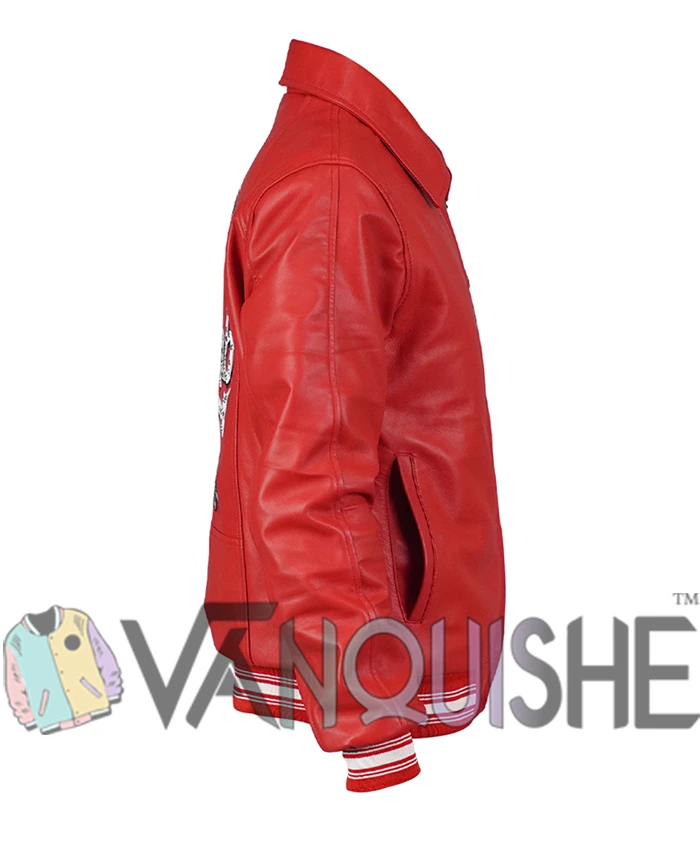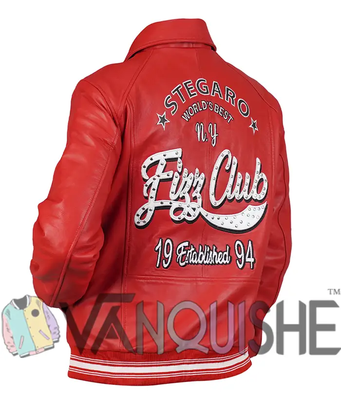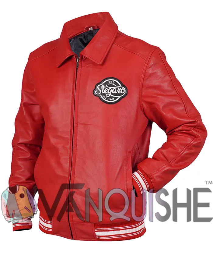 Get Incredible Stegaro Fizz Club Red Genuine Leather Varsity Jacket For Sale