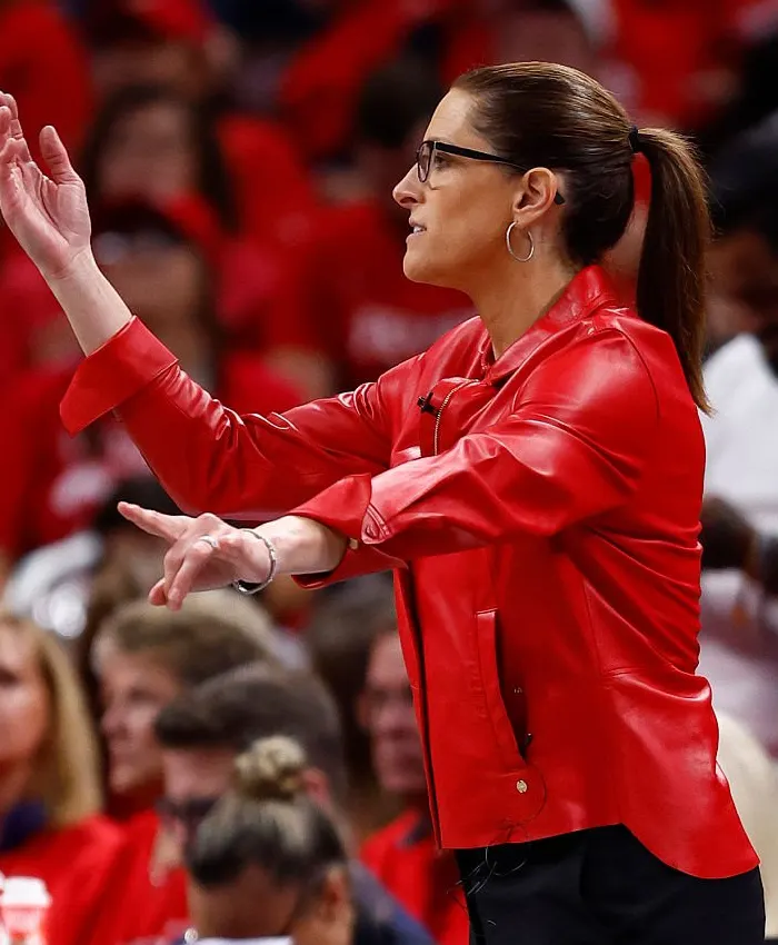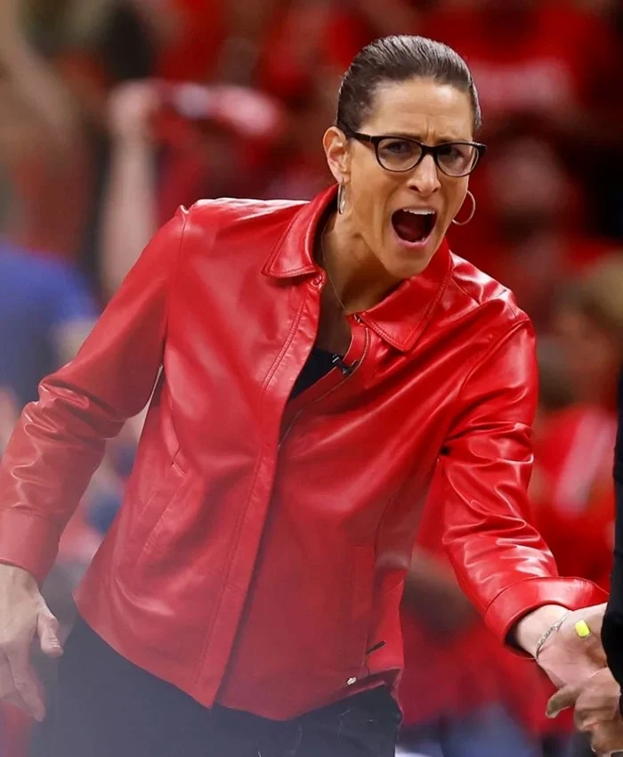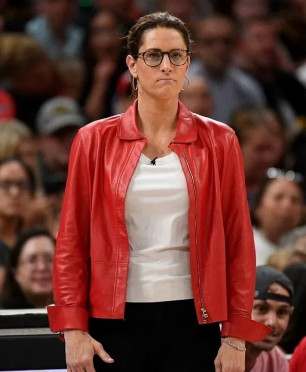 WNBA Playoffs Semi-Final 2025 Stephanie White Red Leather Jacket