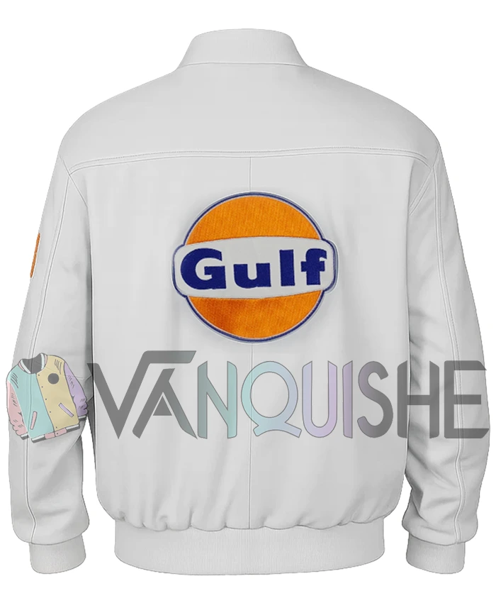 Crisp and refined feel of white leather shell, snap tab collar sharply frames the neckline, side pockets accommodate essentials.