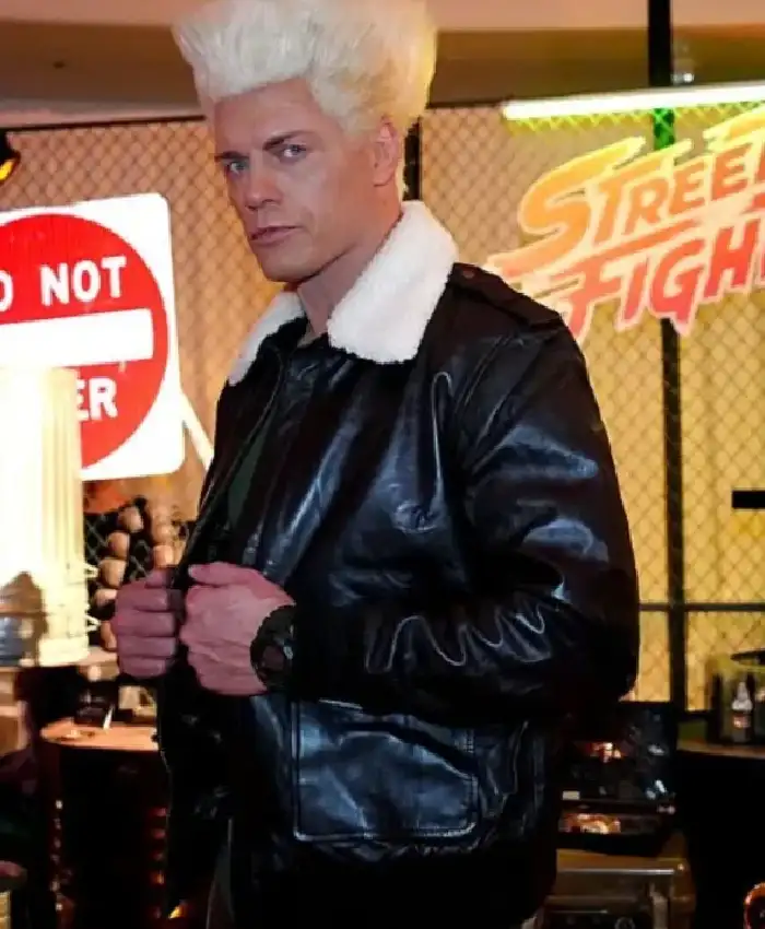 Shop Cody Rhodes Street Fighter Trailer Launch Party 2026 Shearling Black Aviator Bomber Leather Jacket