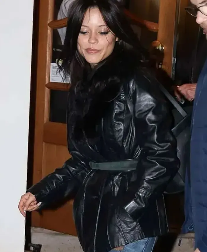 Jenna Ortega Casual Wear 2024 Series Jenna Ortega Black Fur Leather Jacket