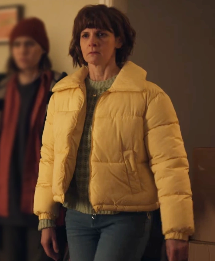 Louise Brealey TV-Series Such Brave Girls 2025 Deb Yellow Puffer Jacket