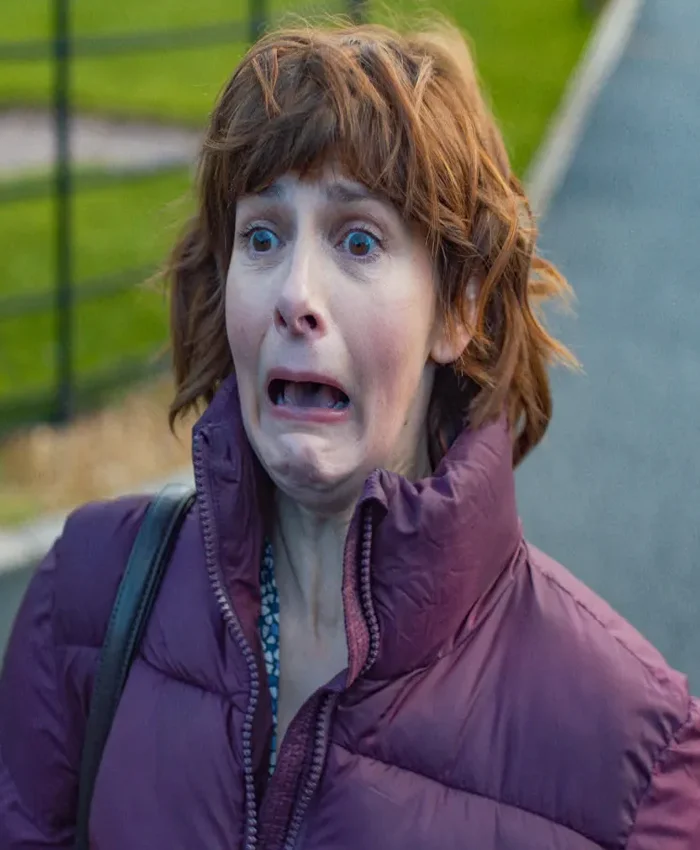 Louise Brealey TV-Series Such Brave Girls 2025 Deb Purple Puffer Jacket