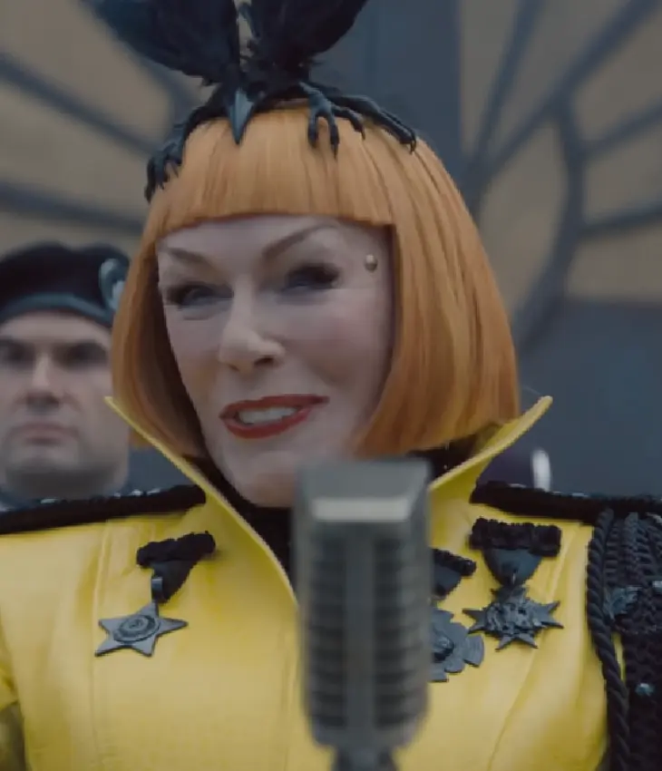 Glenn Close 2026 The Hunger Games Sunrise on the Reaping Yellow Trench Coat For Women