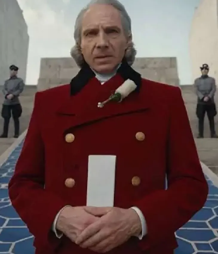 Ralph Fiennes 2026 The Hunger Games Sunrise on the Reaping President Snow Red Wool Long Coat For Men