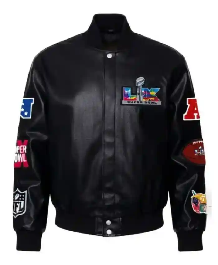 Super Bowl LX 2026 Black Varsity Leather Jacket For Men and Women