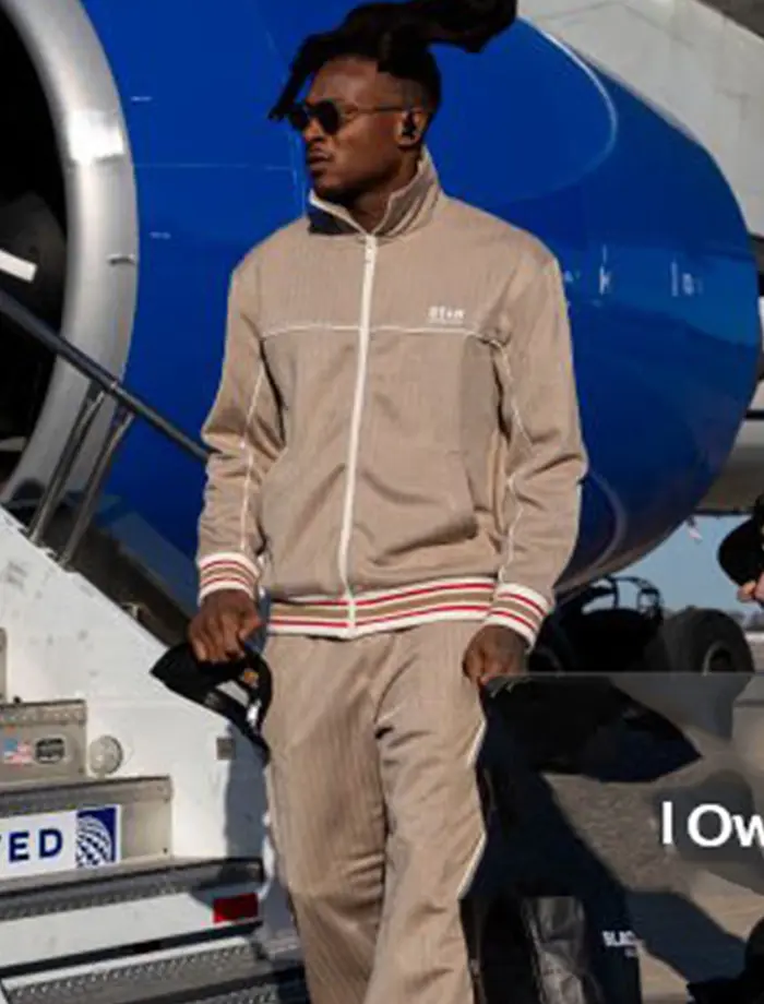 Buy Super Bowl LIX 2025 DeAndre Hopkins Goose Beige Pine Striped Tracksuit For Sale