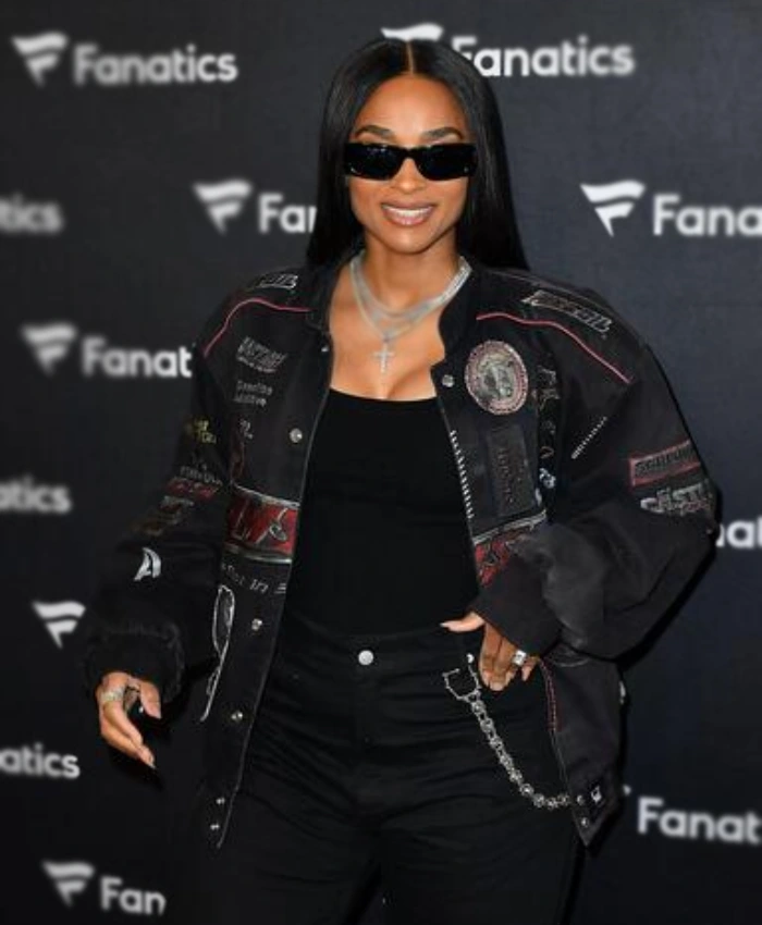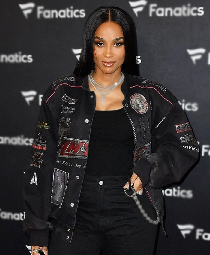 Ciara Super Bowl Party 2026 Black Racing Bomber Jacket For Women