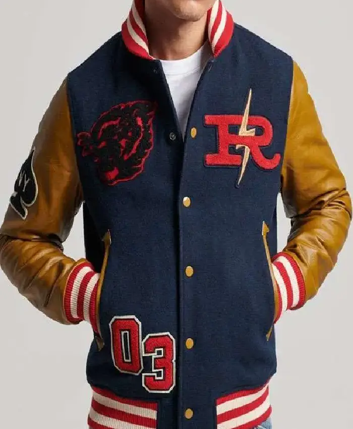 Superdry Blue and Brown Varsity Jacket For Men and Women