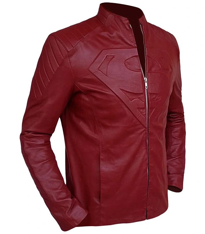 Smallville Logo Superman Clark Kent Maroon Leather Jacket For Sale