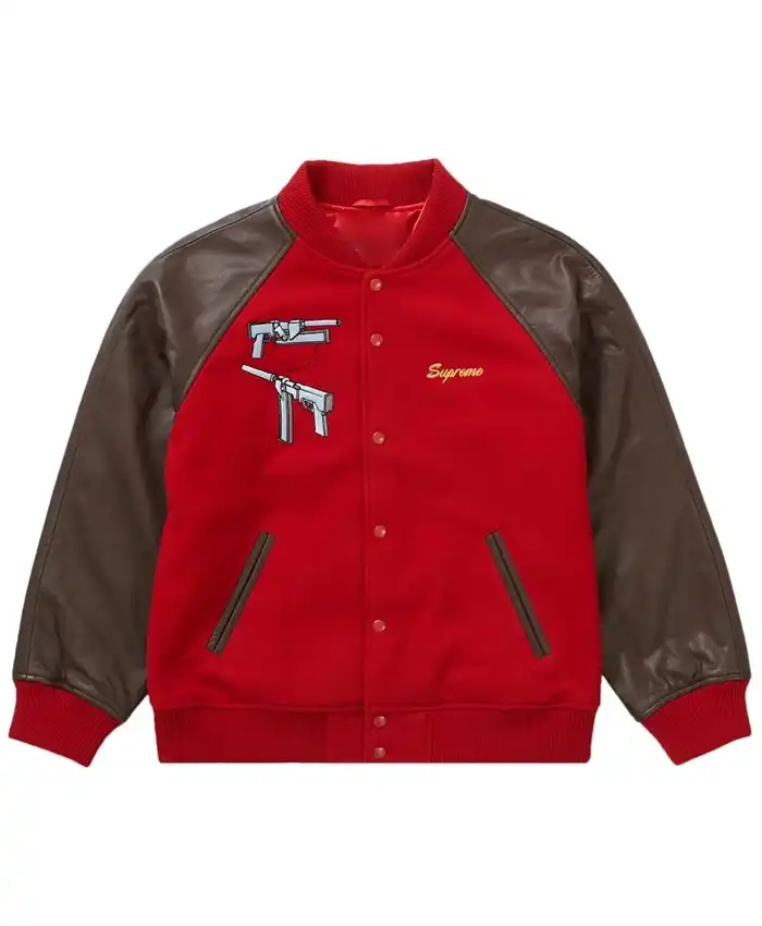 Supreme Aeon Flux Red and Black Wool Varsity Jacket On Sale For Men and Women