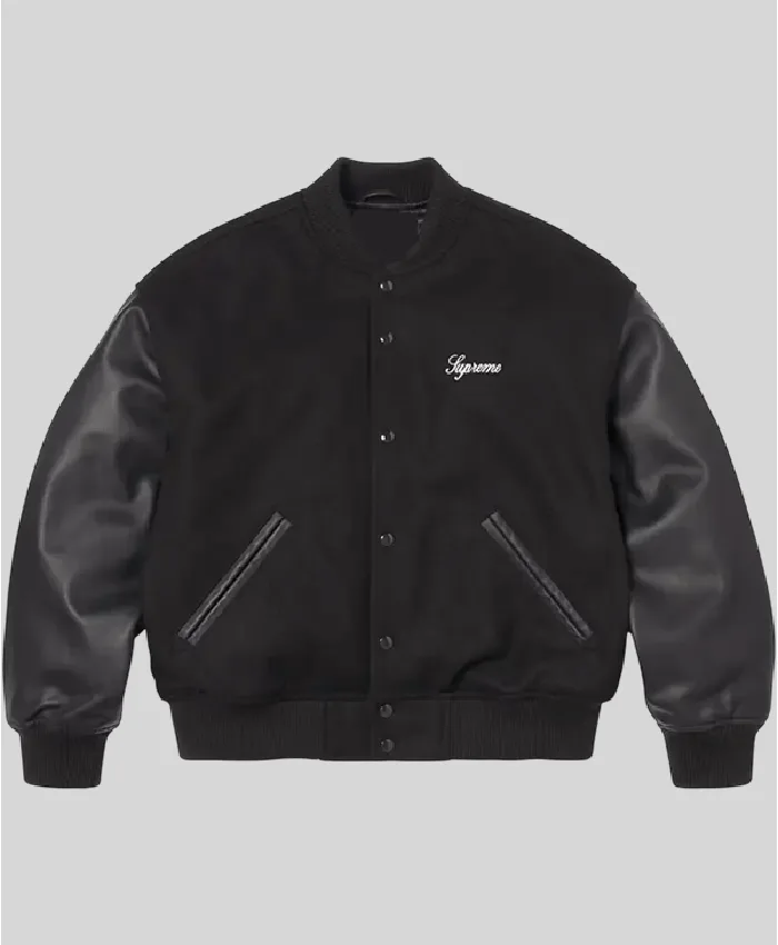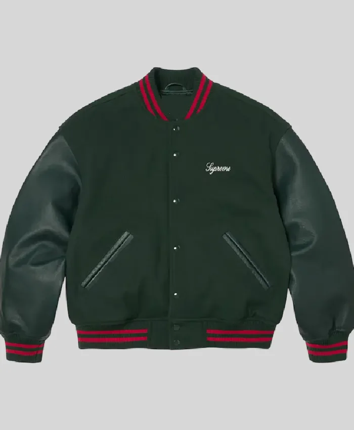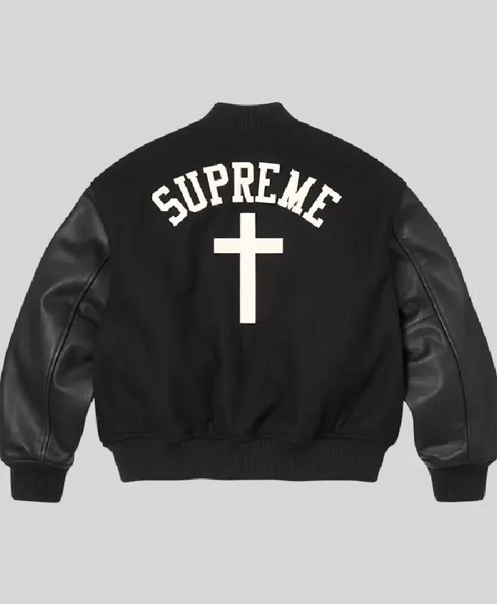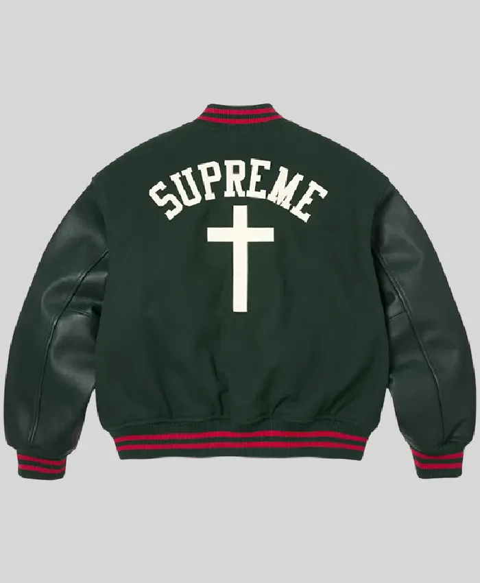 Supreme SS26 Cross Wool Leather Varsity Jacket For Men and Women