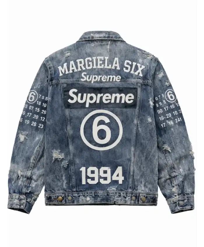 Supreme MM6 Maison Margiela 2026 Blue Distressed Denim Trucker Jacket On Sale For Men and Women