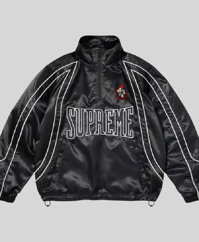 Supreme Satin Trim Half-Zip Black Jacket For Men and Women