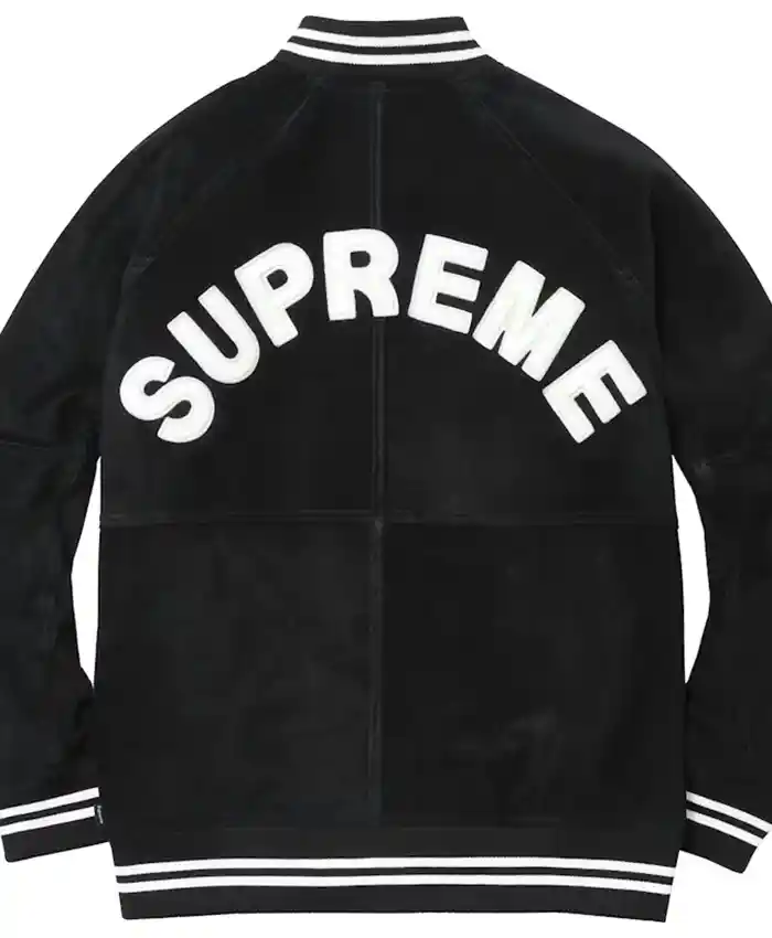 Order Authentic Supreme Black Suede Varsity Jacket – Shop Now