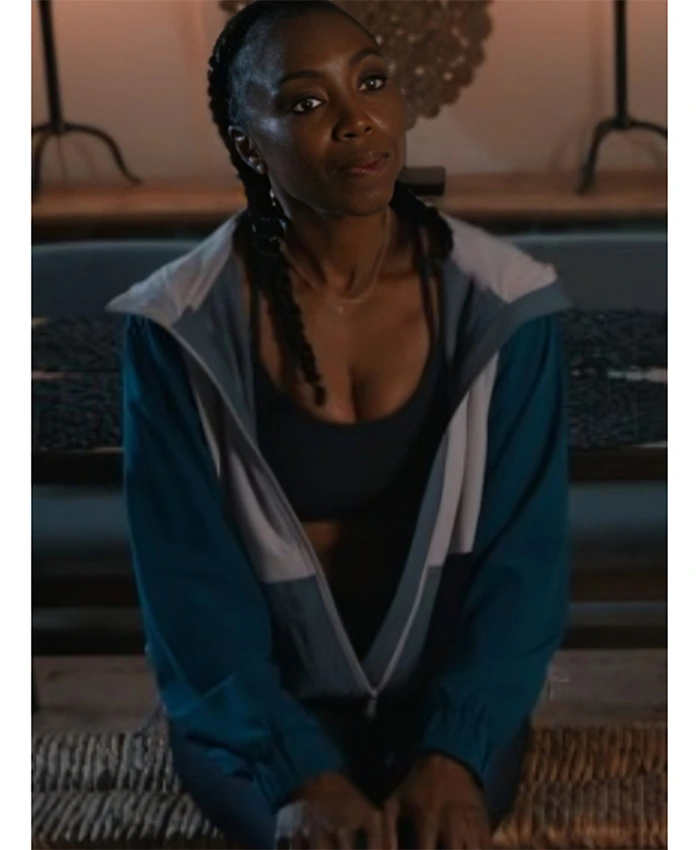 In Sweet Magnolias, Helen Decatur is the kind of woman who walks into a room and instantly commands it — not with noise, but with presence. She’s smart, strong-willed, and always ten steps ahead, whether she’s winning cases or catching hearts in the slow-paced town of Serenity. Her style? Effortless but sharp — just like this green and white track jacket that matches her calm strength and bold character.