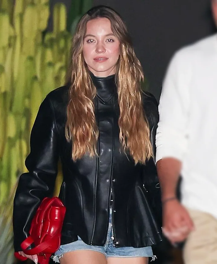 Sydney Sweeney Los Angeles Date Night 2025 Black Leather Jacket