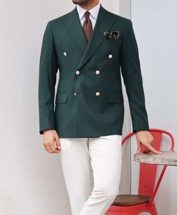 Double Breasted Pine Green 2 Piece Slim Fit Suit For Mens