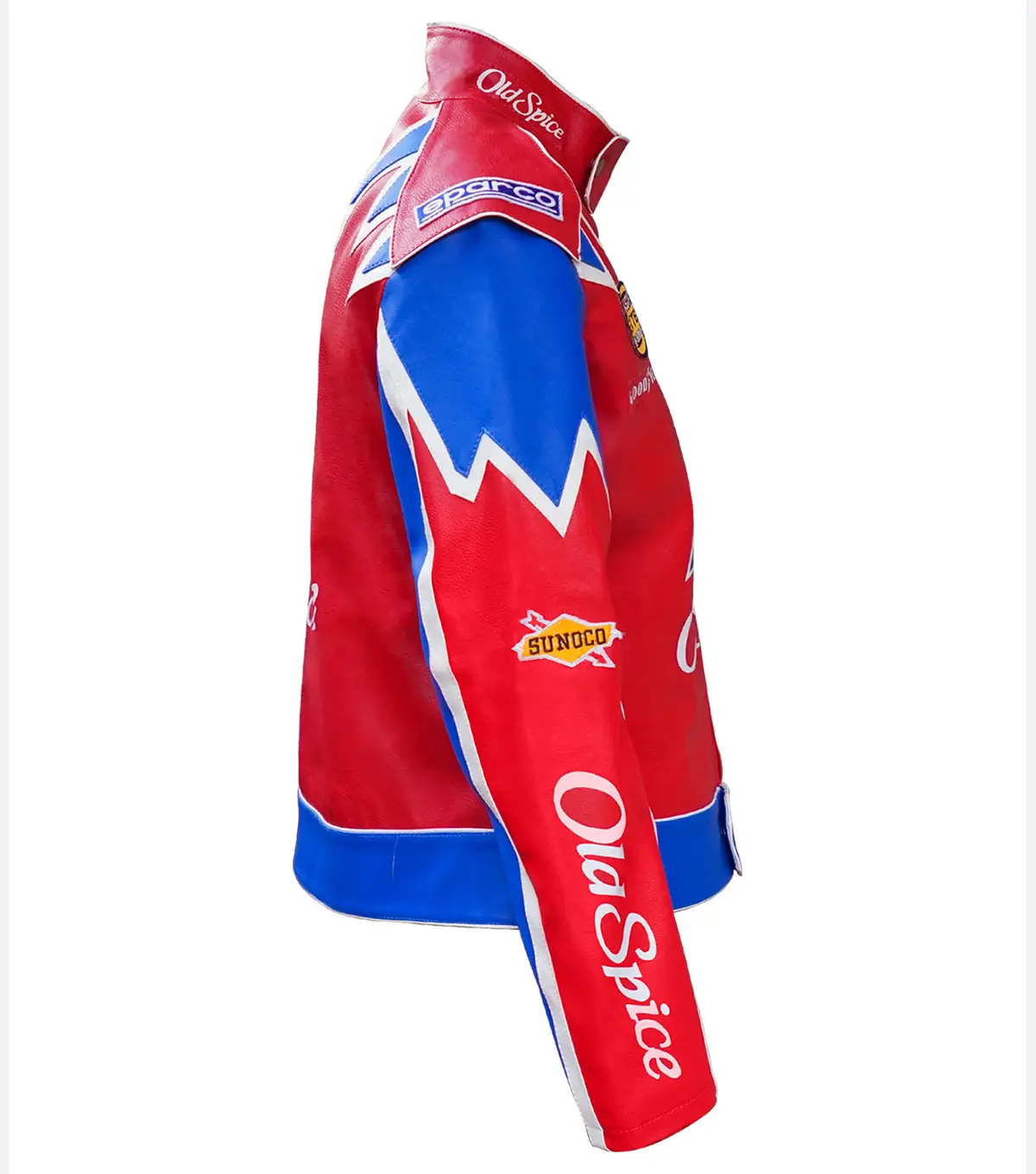 Fans can enhance their collection with other legendary pieces like the Ricky Bobby Wonder Bread Jacket or the Ricky Bobby Powerade Jacket. They can also check out themed styles in our Halloween Jackets collection. This Talladega Nights Old Spice Red Jacket is perfect for collectors, movie fans, and style-conscious individuals, ensuring you stand out with authenticity and flair.