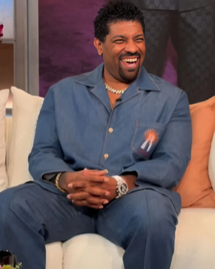Tamron Hall Show Deon Cole Denim Blue Embroidered Shirt