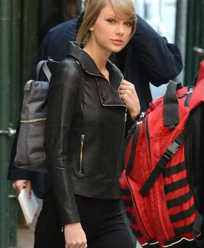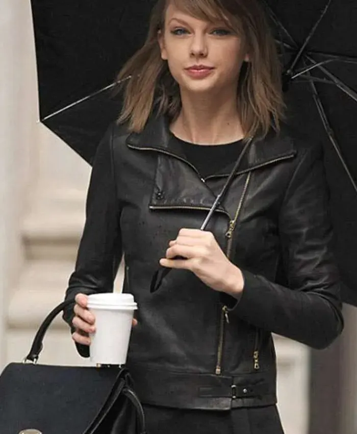 Dare to rock a Taylor-influenced outfit by combining this black leather jacket with skinny jeans, a striking tee, or even a mini skirt. Finish off with ankle boots or stylish sneakers to bring the whole look together. Wear it over a hoodie or an oversized knit sweater for a relaxed, trendy feel. Because of the jacket’s crisp outline and adaptable black color, it is a necessary item for an updated style.