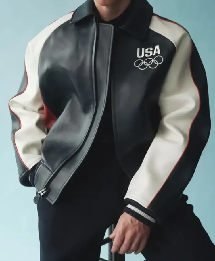 Winter Olympics 2026 Team USA Black White Bomber Leather Jacket For Men and Women