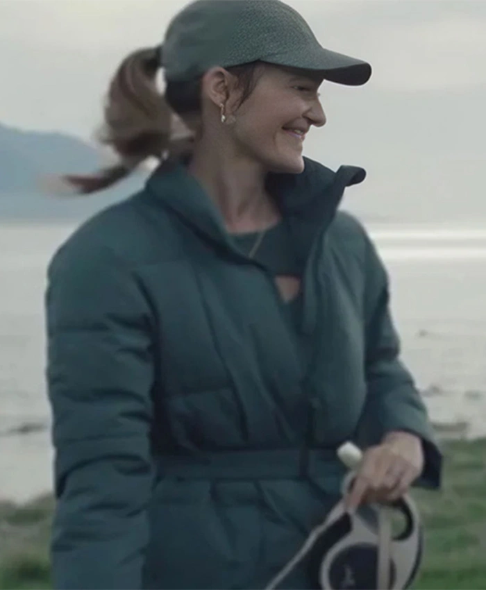 Now let’s talk about Tess—played by Tess Haubrich—who not only delivers a powerful performance but also rocks a seriously cool wardrobe. And yes, we’re obsessed with her teal green puffer jacket.