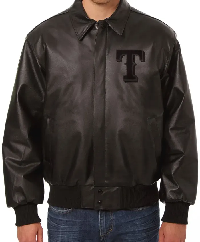 Texas Rangers Black Bomber Leather Jacket For Sale
