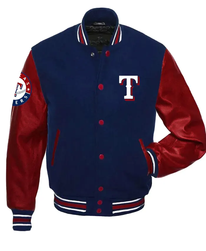 Be the first to review “Texas Rangers Navy Blue And Red Varsity Full Snap Jacket” Cancel reply