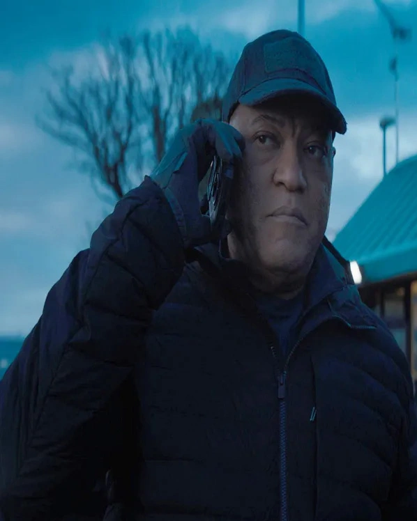 Laurence Fishburne Movie The Amateur 2025 Black Puffer Jacket