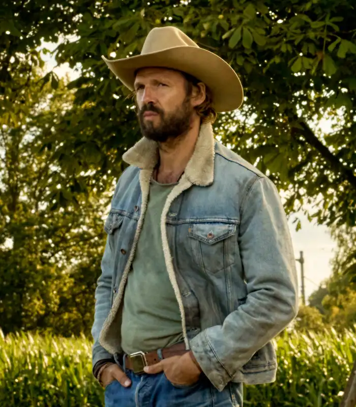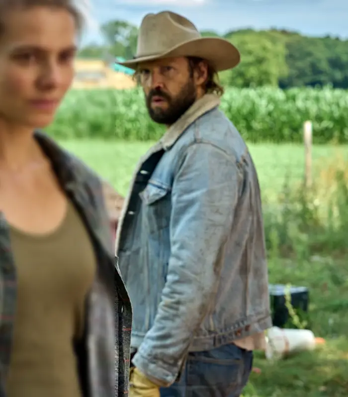Pieter Embrechts Movie The Balloonist 2025 Arnaud Blue Shearling Denim Jacket