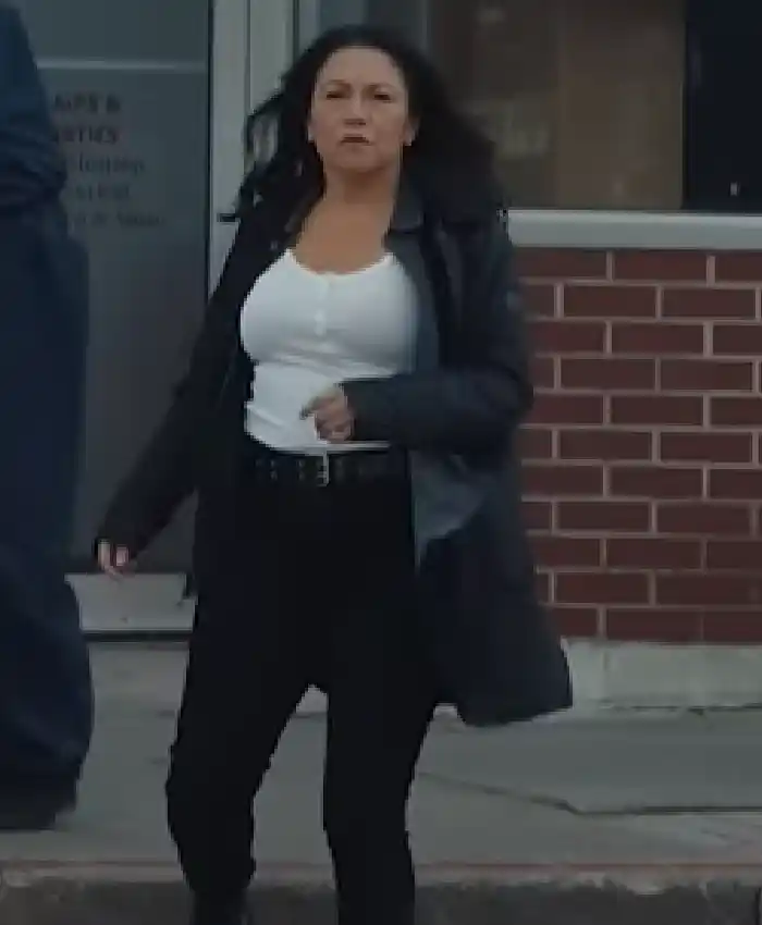Tamara Podemski The Borderline 2026 TV Series Erica Ross Black Cotton Long Coat For Women