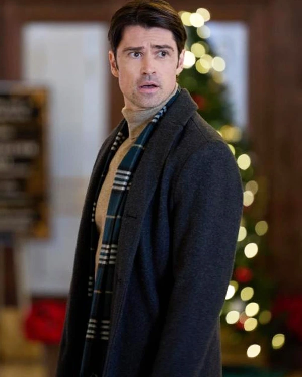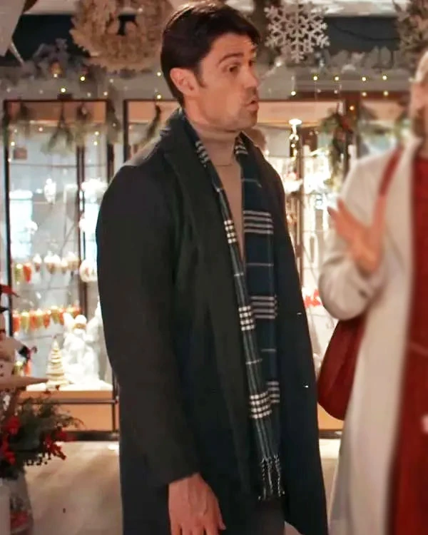 Corey Sevier Movie The Christmas Charade 2024 Josh Black Wool-Blend Coat