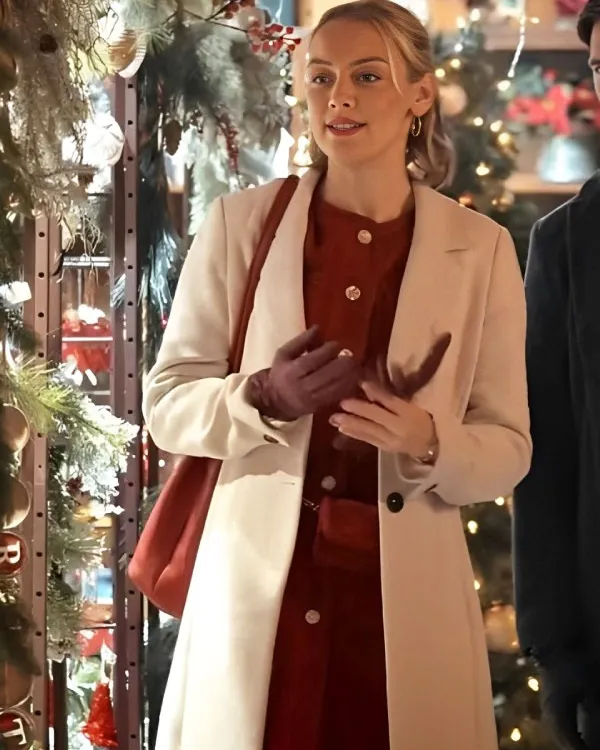 Whitney Movie The Christmas Charade 2024 Rachel Skarsten White Wool-Blend Coat