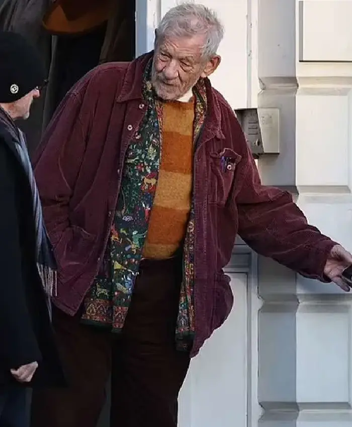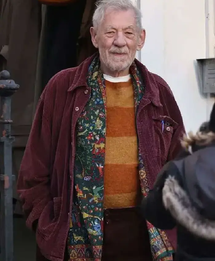 Ian McKellen The Christophers 2026 Julian Sklar Maroon Corduroy Jacket For Men