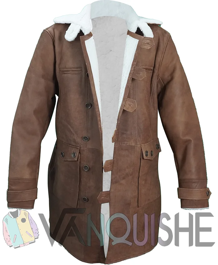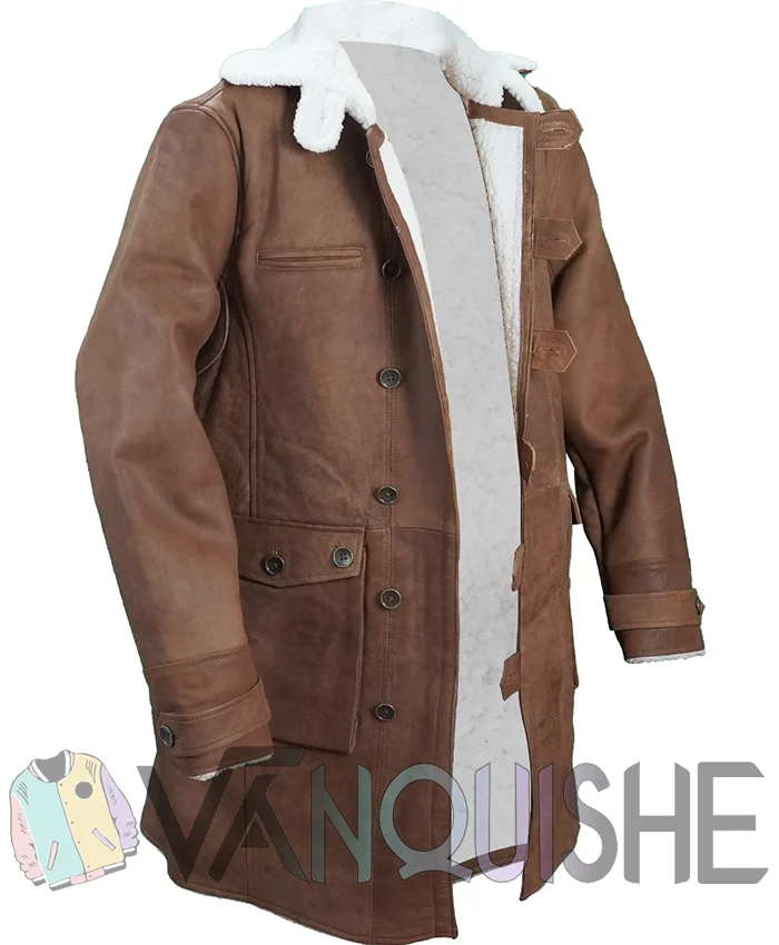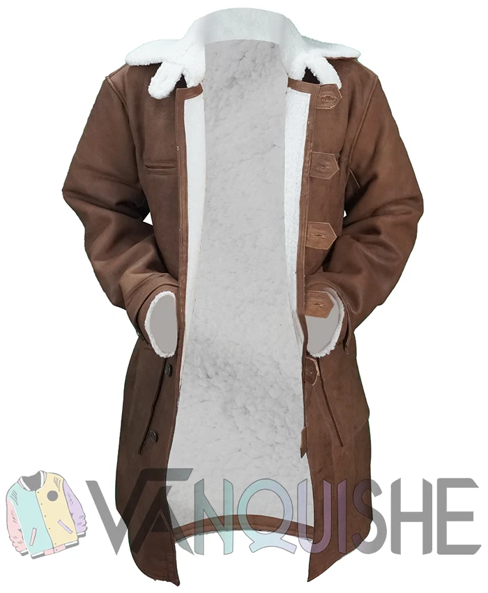 Buy Bane Batman Dark Knight Rises Distressed Brown Tom Hardy Long Shearling Leather Coat For Sale