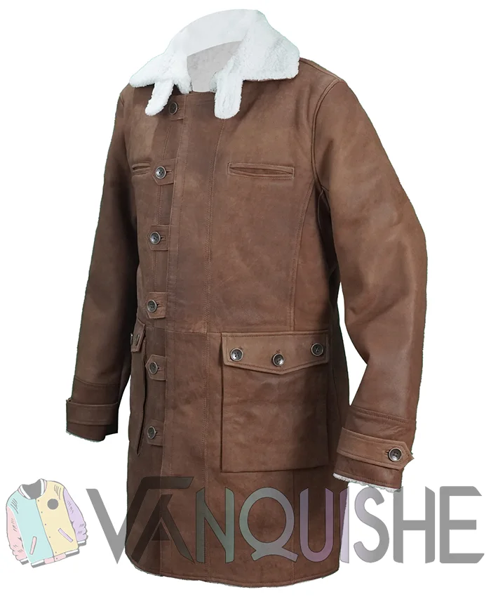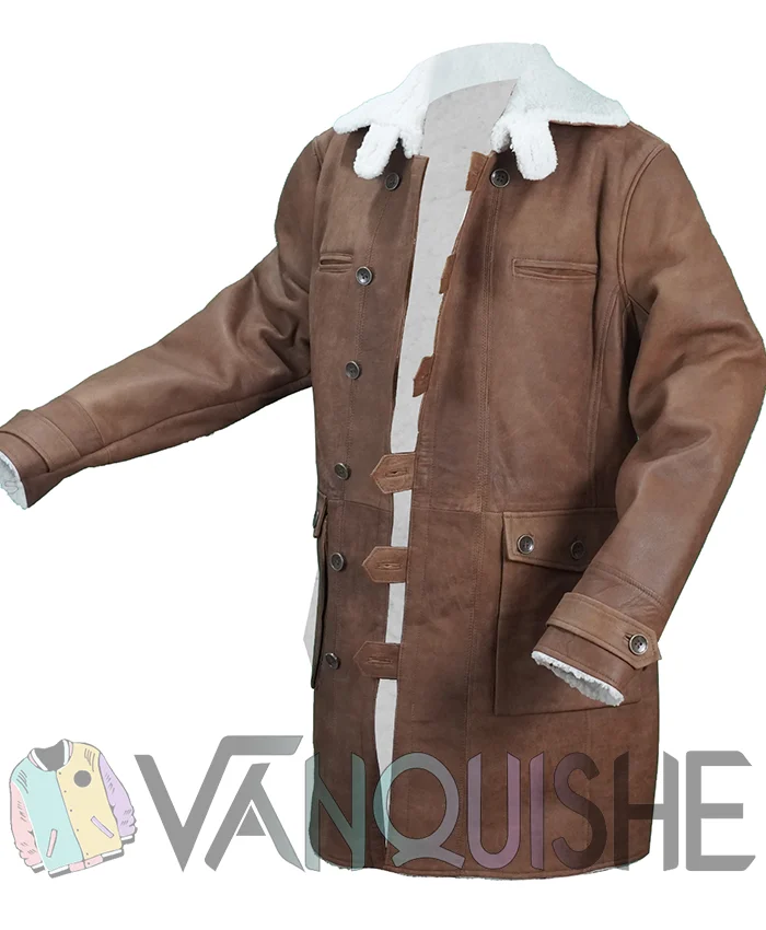 Let’s be honest Bane’s coat stole the show. Worn by Tom Hardy in The Dark Knight Rises, this shearling trench isn’t just part of his costume it’s a symbol of raw power, brutal confidence, and calculated cool. Now, this iconic look can be yours.