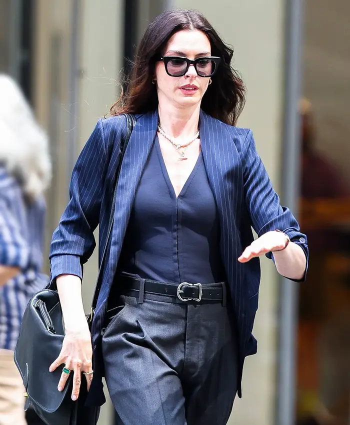 Anne Hathaway The Devil Wears Prada 2 Andy Sachs Blue Striped Blazer