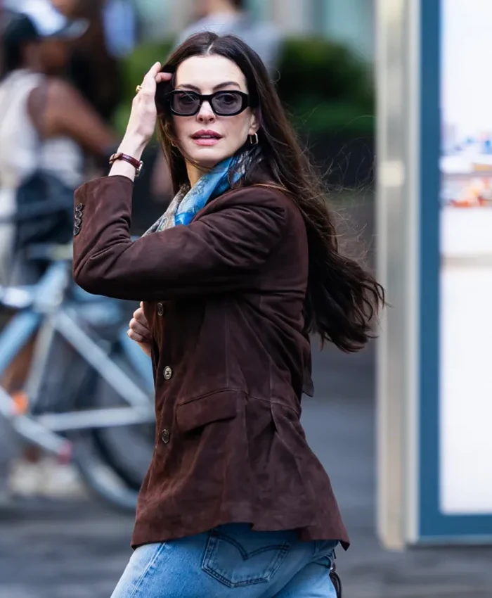 Anne Hathaway The Devil Wears Prada 2 Andy Sachs Brown Suede Leather Blazer