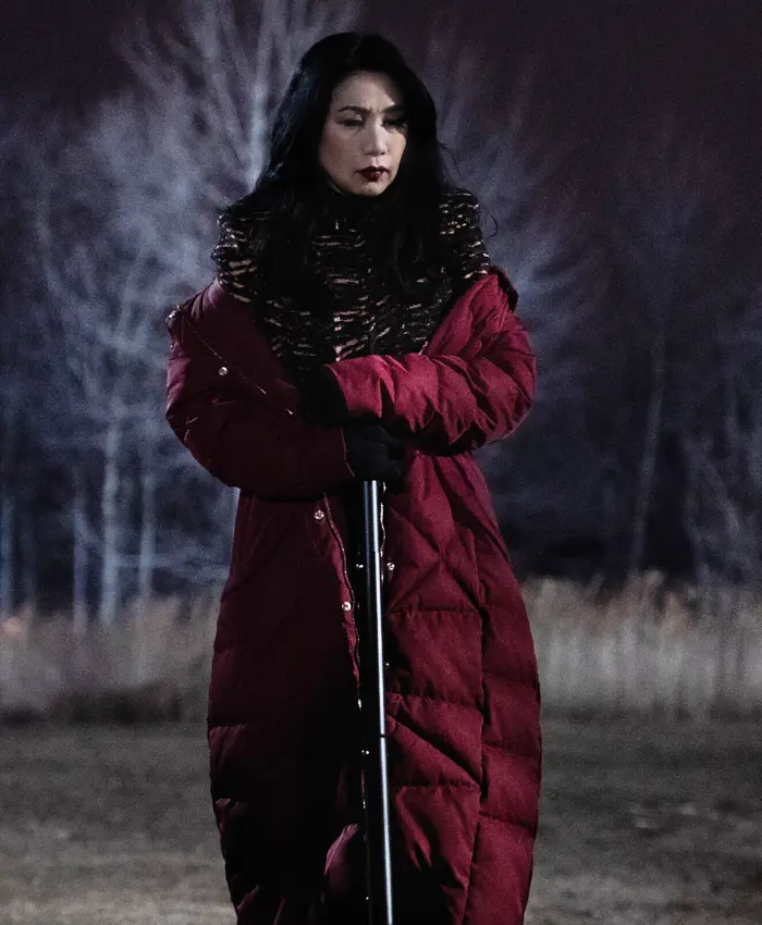 Liza Lapira TV-Series The Equalizer 2025 Melody Bayani Red Puffer Long Coat