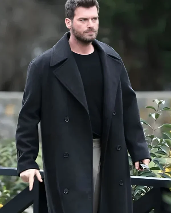 Kivanç Tatlitug TV-Series The Family (Aile) Aslan Soykan Black Wool-Blend Coat