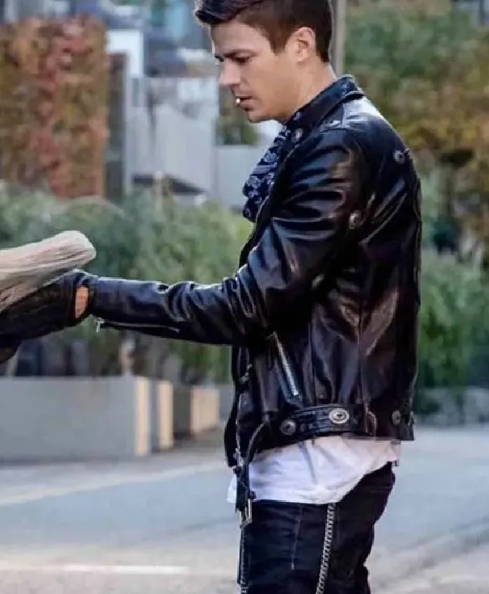 Grant Gustin The Flash Biker Black Leather Jacket For Men